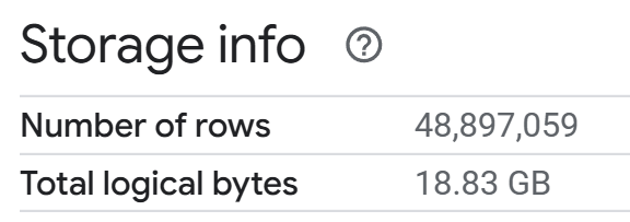 So instead, we uploaded the file with all link relationships to Google Cloud Storage and then into BigQuery. The BQ file size limit is 100MB, so our 20GB file had to go to Storage first.
